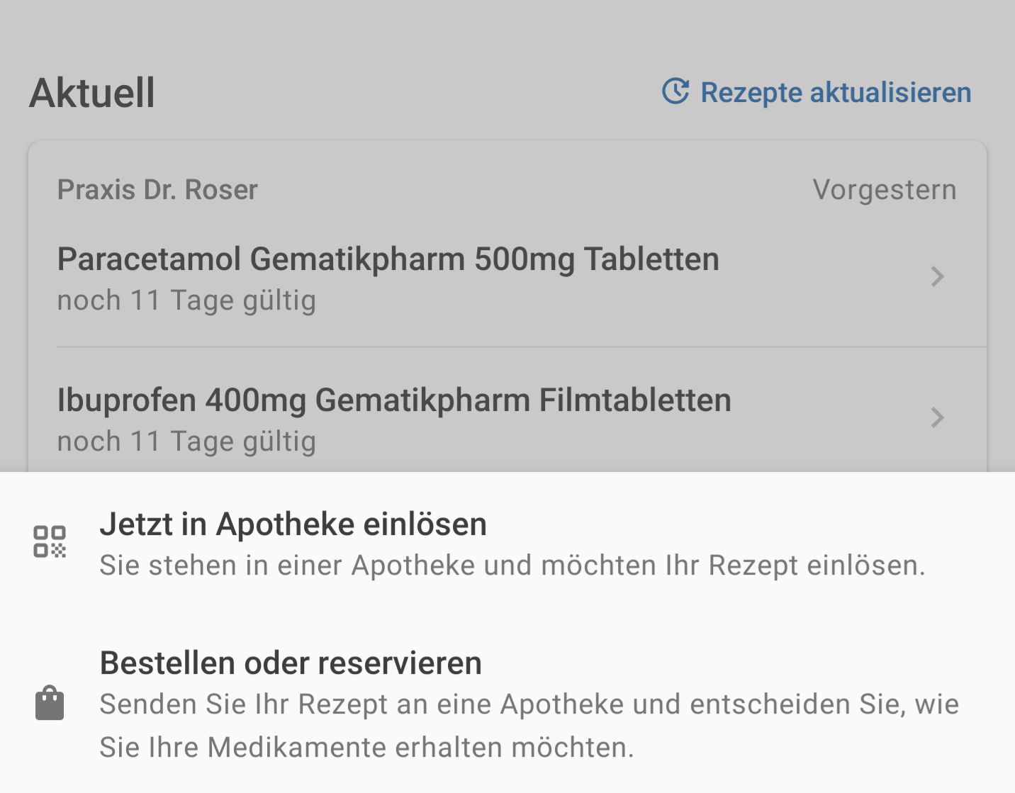 Nach einer Testphase ist der offizielle Start des E-Rezepts für das 4. Quartal 2021 vorgesehen. Dann können gesetzlich Versicherte in der App von ihrer Ärztin oder ihrem Arzt Rezepte empfangen und Informationen wie Hinweise zur Einnahme und Dosierung einsehen. Zum Einlösen eines E-Rezepts kann der Rezeptcode in der App geöffnet und in der Apotheke vorgezeigt werden. Alternativ kann der Versicherte aber auch aus der Liste aller Apotheken eine Apotheke und die Art und Weise, wie er seine Medikamente erhalten will, in der App auswählen. Zur Auswahl stehen: Reservierung zur Abholung oder Lieferung per Botendienst oder per Versanddienstleister. Die Apotheke entscheidet dabei, welche Services sie anbietet.