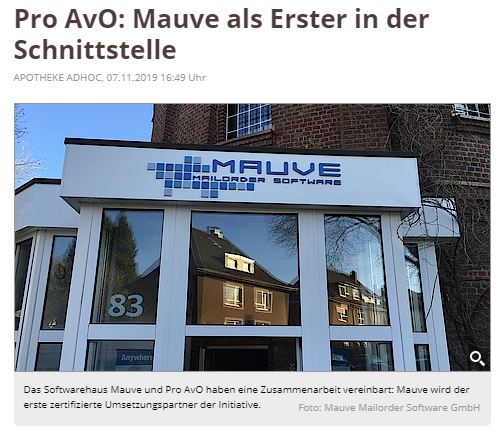 Mauve Mailorder Software, ein führender Digital-Spezialist im Apothekenmarkt,wird zum Launch der pro AvO-Lösung allen Apothekenkunden eine Anbindung an die Digital-Plattform von pro AvO gewährleisten. Mehr zu dem Thema lesen Sie hier