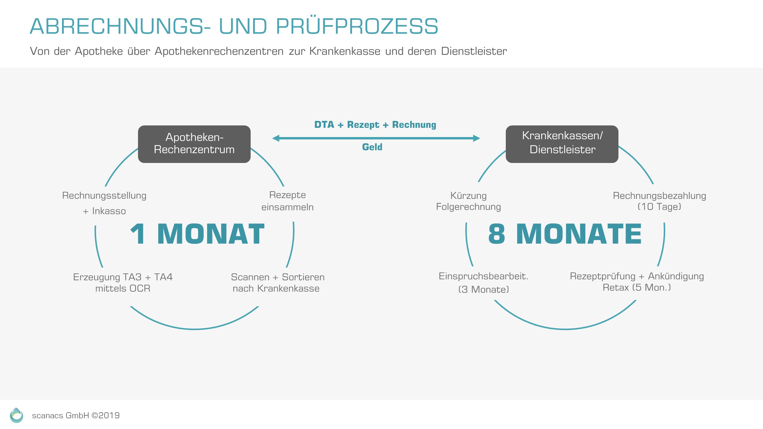Mehr als 19.000 Apotheken bearbeiten jedes Jahr rund 750 Millionen Rezepte mit mehr als einer Milliarde Verordnungen. Nach Übermittlung an die Krankenkassen durchläuft jedes Rezept anschließend bei den Krankenkassen einen bis zu zwölf Monate dauernden aufwändigen Prüfprozess. Etwa zehn Prozent aller Rezepte werden durch Mitarbeiter manuell gesichtet, Erfassungsfehler korrigiert oder erkannte Fehler bei der Arzneimittelabgabe der Apotheke per Brief angezeigt. Nach Eingang des so genannten Retax-Anschreibens haben die Apotheken drei Monate Zeit für einen Einspruch, sonst erfolgt eine Kürzung des Erstattungsbetrages.