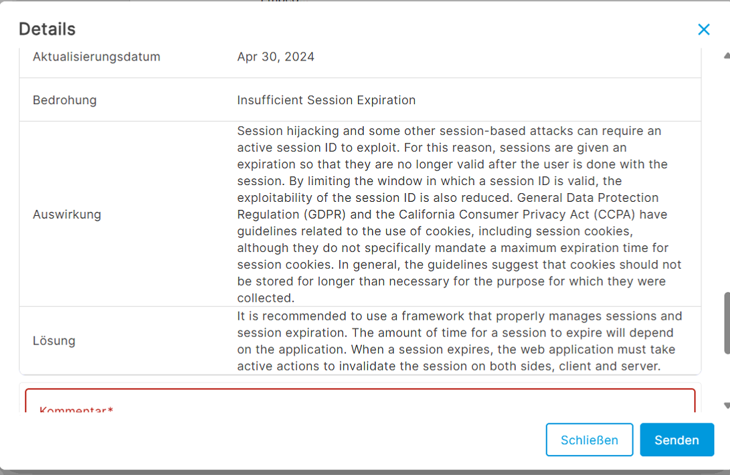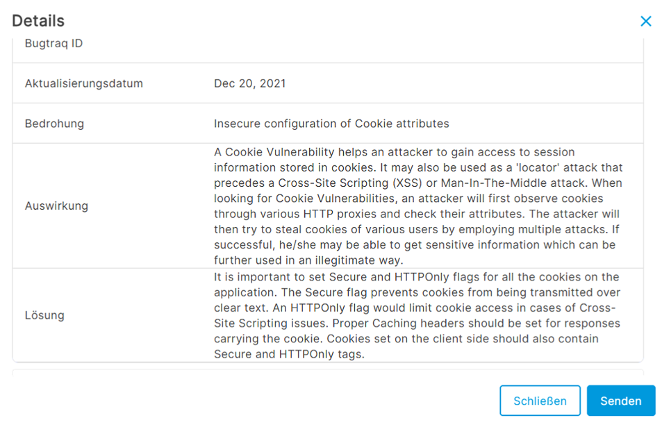 Beschreibung der Felder: