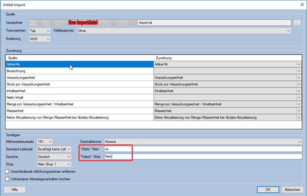 Bezeichnung = wird nicht mit importiert (dient nur zur Hilfe)