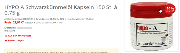 Wenn alles richtig engetragen wurde, sieht es im Shop so aus. In einigen ApoSops kann es Layoutbedingt notwendig sein, nachzuarbeiten. Wenden Sie sich dazu bitte an den Mauve-Support.